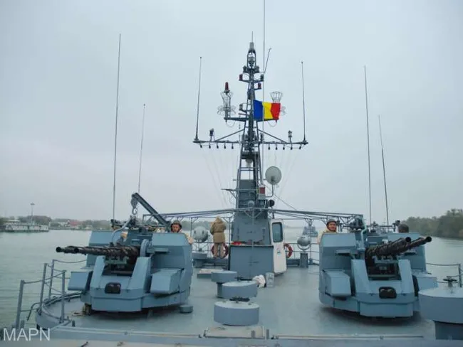 FOTO 350 de militari, o navă cu 96 de guri de foc, lansatoare de proiectile apără gurile Dunării