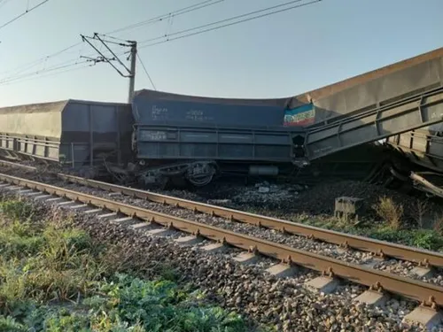 Nouă vagoane din compunerea unui tren de marfă, care aparţine operatorului feroviar naţional şi care transporta cărbune pe relaţia Motru Est - Cernele, au deraiat la ieşire din halta Răcari, marţi dimineaţa.
