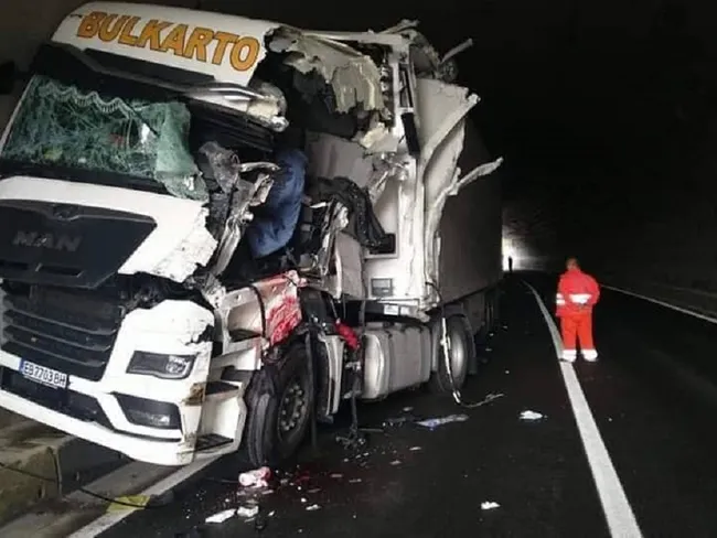 Potrivit primelelor informații, accidentul a fost produs de șoferul bulgar care a intrat pe contrasens în tunel și a „agățat” camionul românesc.
