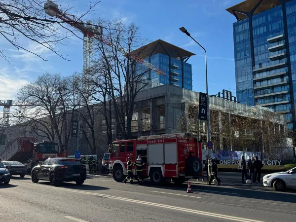 Un accident grav s-a produs pe un șantier din București. O placă de beton s-a prăbușit peste un utilaj. O persoană s-ar afla încarcerată.