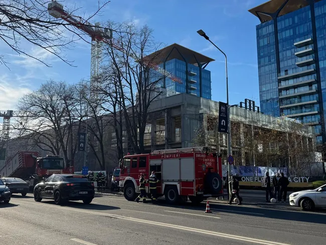 ”Intervenim în aceste momente pe Calea Floreasca, Sector 1, București, ca urmare a prăbușirii unei plăci de beton pe un șantier.