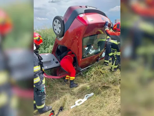 Pompierii ISU Crișana au intervenit duminică după amiaza pentru descarcerarea unei femei blocate într-un autoturism care s-a răsturnat în afara părții carosabile, lângă Ciumeghiu.