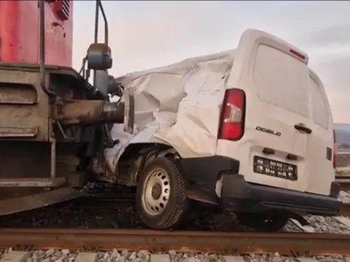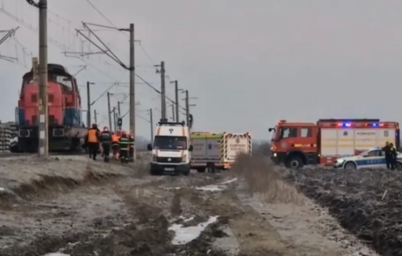 Accident mortal! Un șofer de 35 de ani a intrat cu dubița în fața unei locomotive