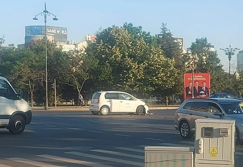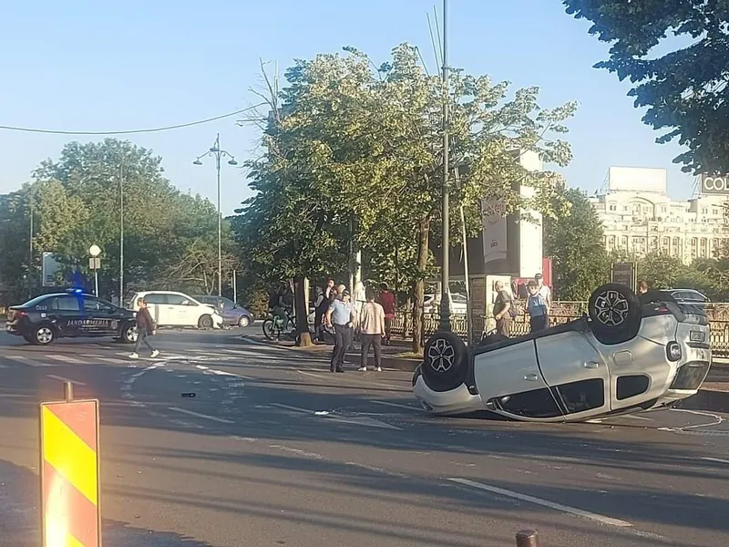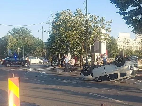 Un accident spectaculos a avut loc în dimineața zilei de marți, 27 iunie, în Piața Unirii din București. Un SUV Dacia Duster a ajuns cu roțile în sus, după ce a fost acroșat de o mașinuță de oraș VW Up!.
