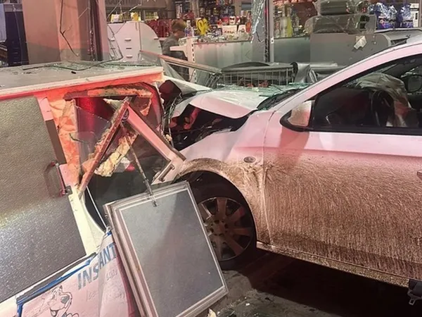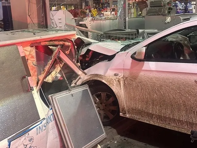 Un accident spectaculos a avut loc în seara primei zile a anului 2025 la Timișoara. Un marocan a încurcat pedalele și a intrat cu mașina într-o benzinărie la propriu, spărgând peretele tip vitrină.