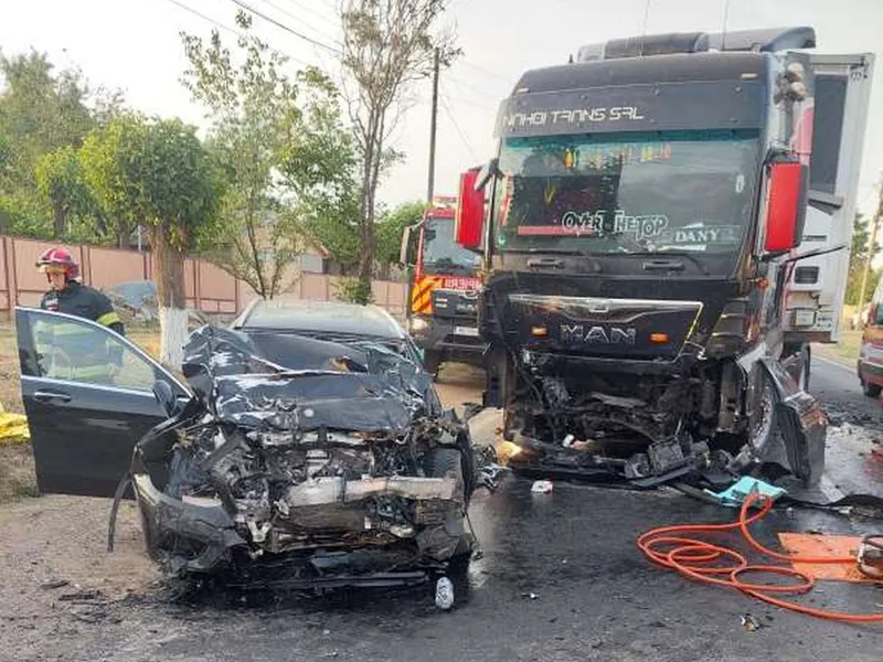 Accident teribil, în județul Galați! O șoferiță a adormit la volan și a intrat frontal într-un TIR. Și-a omorât mama, iar ea este internată în stare gravă la spital.