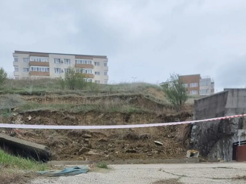 Alunecare periculoasă de teren, lângă un bloc. Incredibil, dezvoltatorul dă vina pe locatari