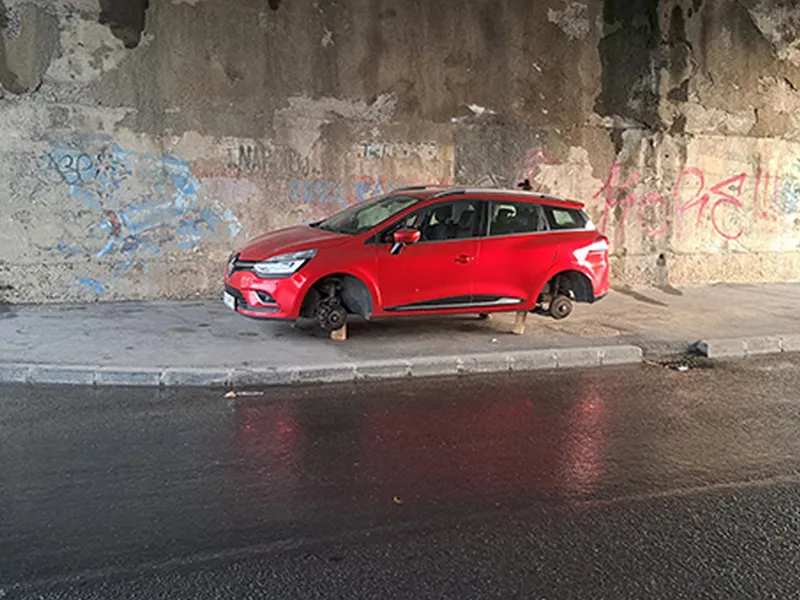 O timișoreancă și-a găsit mașina pe butuci. Hoții i-au furat toate cele patru roți.