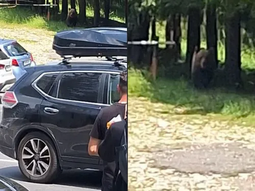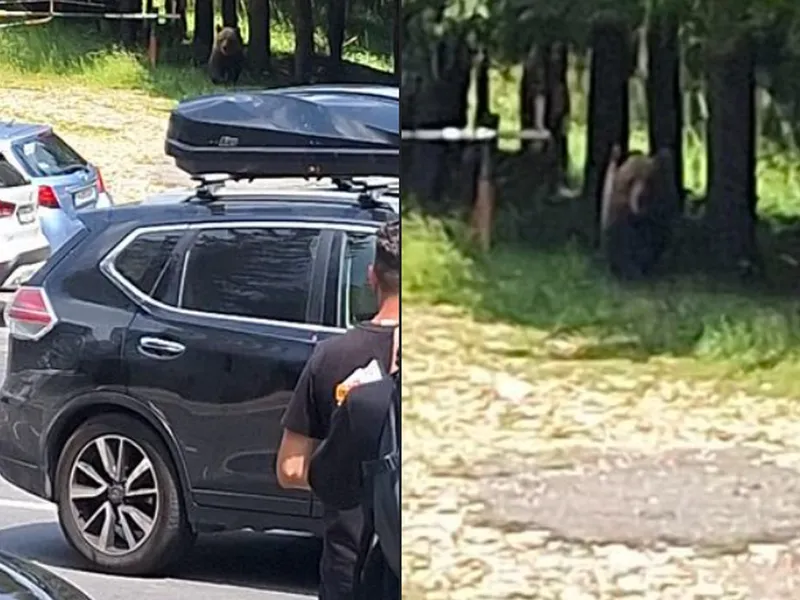 FOTO Atenție! Un urs fără frică de om, văzut în locul de plecare spre Vârful Ciucaş din Prahova