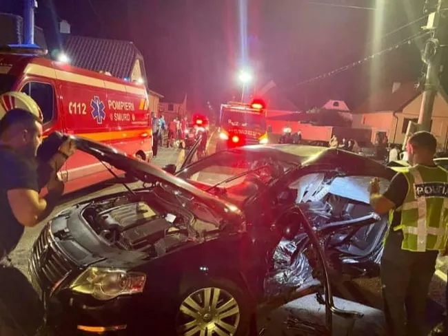 În urma accidentului rutier au fost răniți cei doi șoferi și 3 pasageri din mașina condusă de tânărul din Cristian.