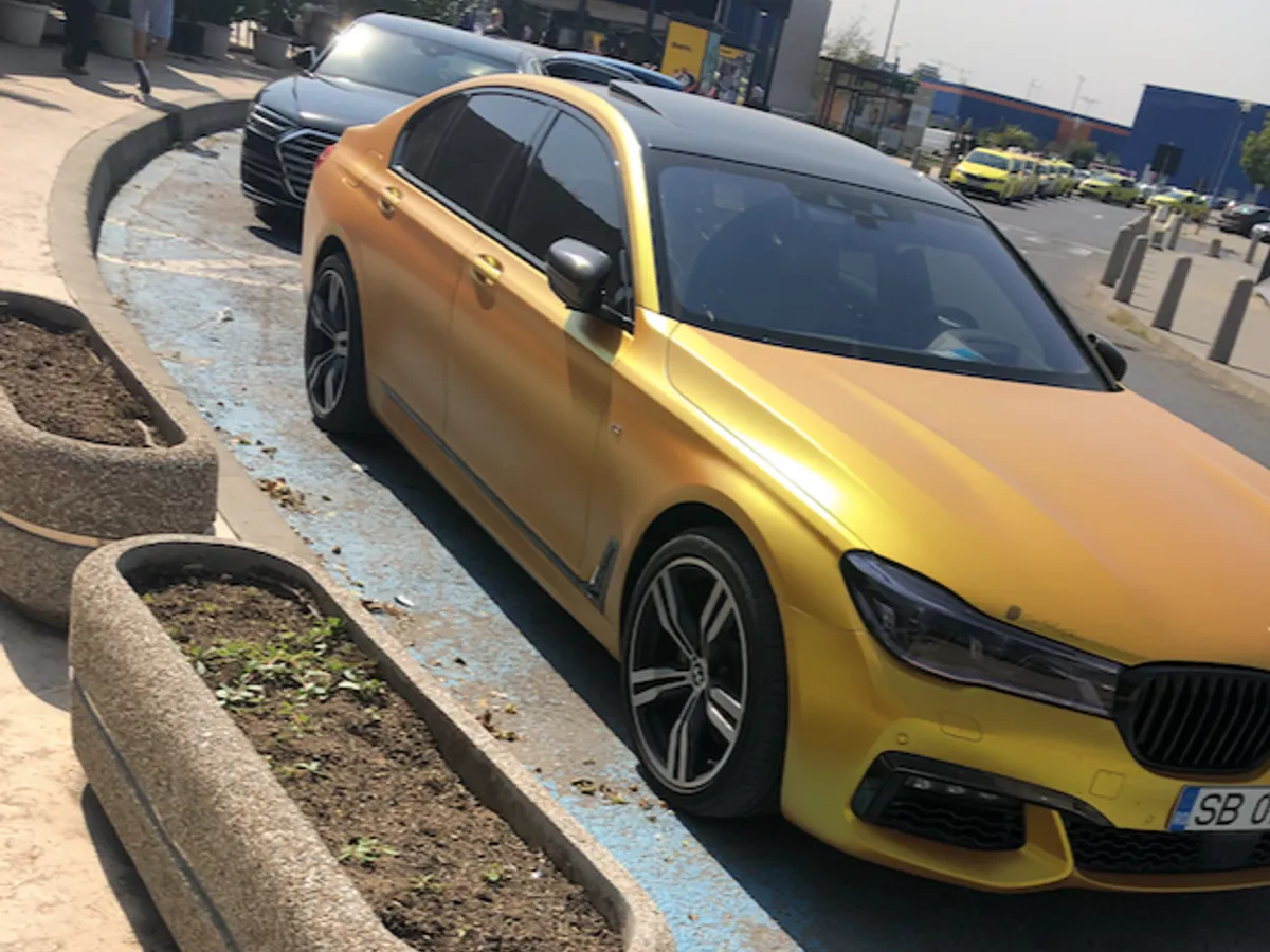 FOTO BMW din „aur“ și Audi pe locul rezervat persoanelor cu handicap la mall Băneasa. Cât e amenda?