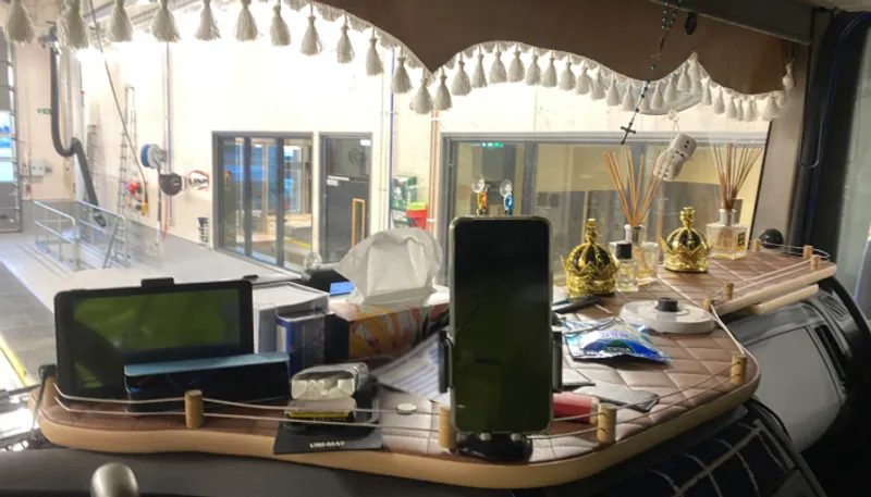 Camionul a oprit în Ånestad, pe autostrada E3 și vehiculului i s-a interzis să mai circule. Pentru a reveni pe drum, șoferul a trebuit mai întâi să îndepărteze toate obiectele care împiedicau vizibilitatea, și anume: masca superioară formată din perdeluțe, o masă pe bord, două coroane mari auri parfumate, două seturi de bețișoare de tămâie, jucării de pluș, o cutie metalică și fotografie cu o femeie goală, la plajă, o cutie de șervețele și o tabletă.