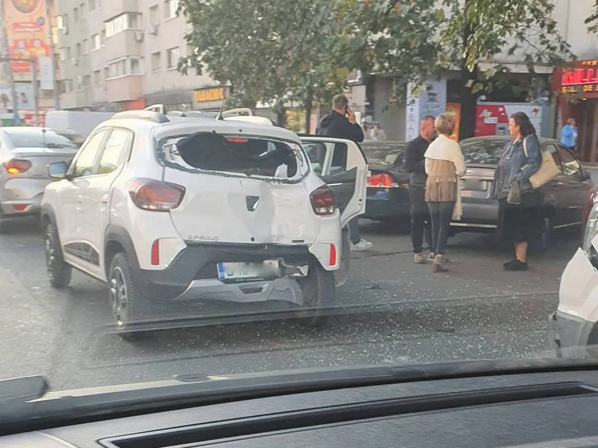Carambol între 4 vehicule, pe Ștefan cel Mare, în București. Cât de „strâmbă” e o Dacia Spring