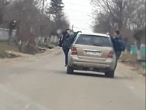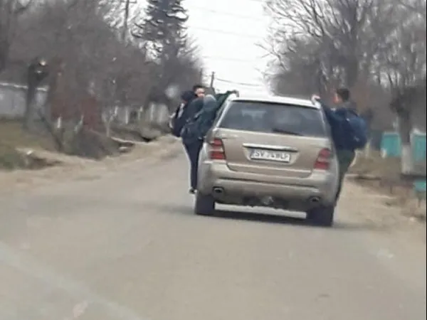 Un caz de-a dreptul șocant s-a înregistrat vineri la amiază pe un drum public din comuna Zvoriștea. Un șofer inconștient și-a umplut mașina de elevi, unii dintre ei în afara autoturismului, și a plecat să-i ducă acasă. În imagini se pot vedea copii atârnați de portiere.
