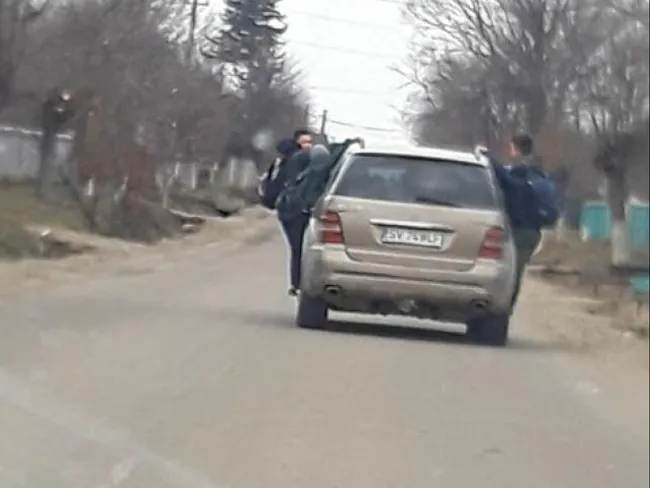 Fotografiile, potrivit Monitorul de Suceava, au fost postate pe rețeaua de socializare facebook, pe contul Mugurel Mugurel, cu următorul comentariu: ”Astăzi, în jurul orei 13.00, Zvoriștea (Buda). Domnul șofer a umplut mașina cu copii din fața școlii, inclusiv 4 atârnați de mașină, conducând cu 60 km/ora chiar peste... Cât de inconștient poate fi..?!”