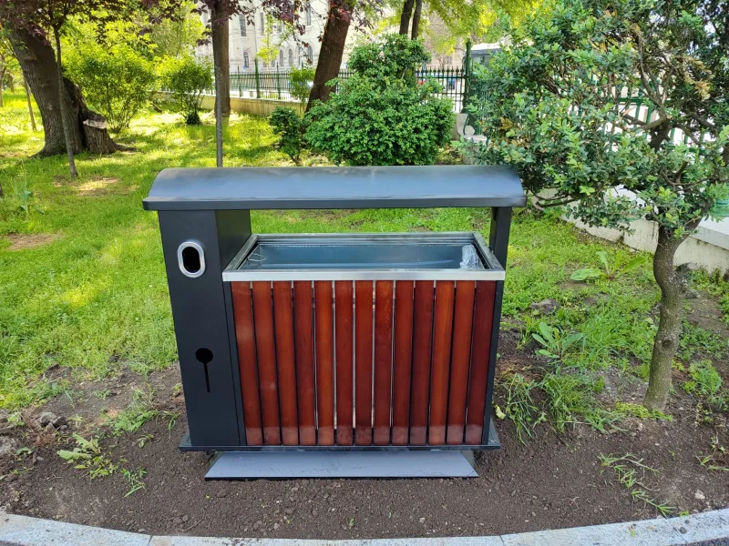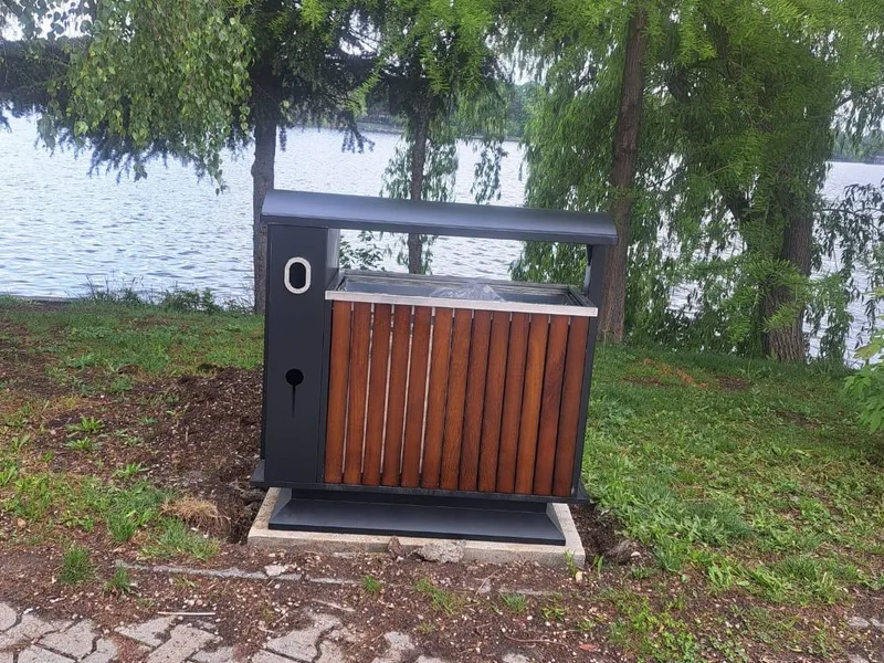 Au fost achiziționate 550 de coșuri, cu decor din lemn, de dimensiuni mai mari decât cele cu care eram obișnuiți, astfel încât să aibă loc în ele și ambalaje mai mari, provenite de la mâncarea fast-food consumată în parc.