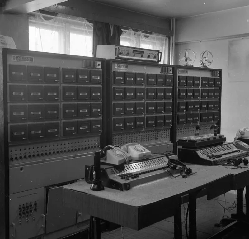 „În caz că vă întrebați cum arată camera de unde se ascultau telefoanele în Securitățile județene, aveți aici o foto unicat din anii '80 (copyright: Aurel Săndulescu).