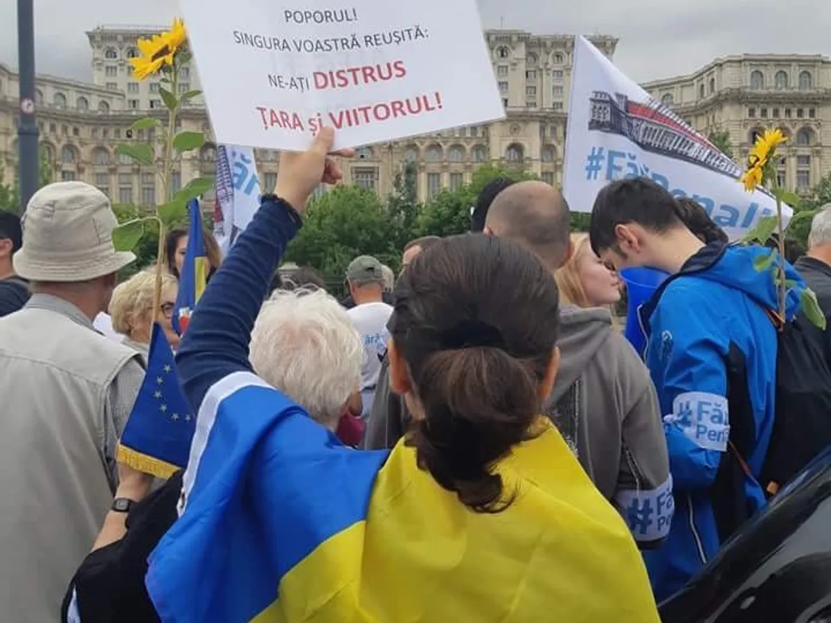 Dacă între ora 11 și ora 12, grupuri mici de protestatari vorbeau despre educație, nepoți și copii plecați să studieze în afară, rata șomajului, bunul simț, infrastructură, idei antreprenoriale sau Anul Centenarului, după prânz, toată lumea a început să strige bine-cunoscutele scandări: „Demisia!”, „România, trezește-te!”, „Jos Guvernul” sau „DNA să vină să vă ia!”. „UDMR – Magyar PSD” a fost mesajul din fața Parlamentului pentru Uniunea Democrată Maghiară din România, care a ales să nu voteze moțiunea de cenzură și să părăsească sala.