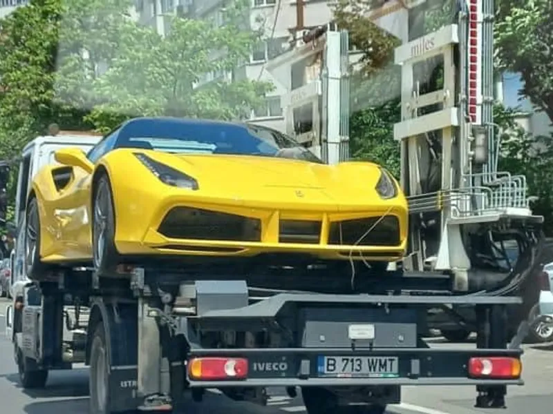 FOTO Dacă ai Ferrari, nu înseamnă că poți parca neregulamentar. Mașina, „săltată” în Sectorul 1