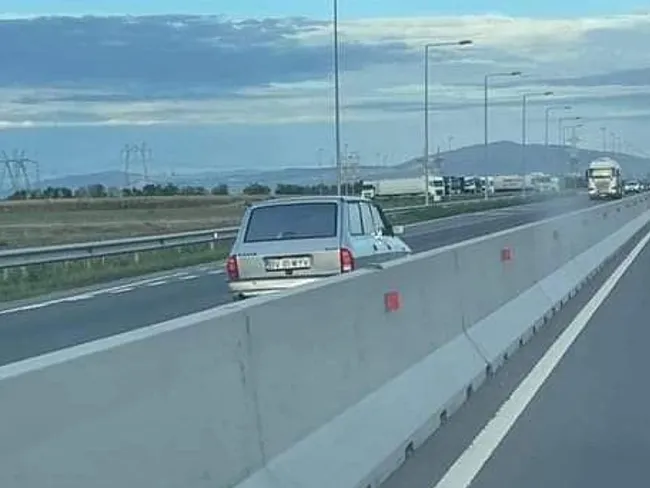 O imagine a devenit virală și a aprins imaginația unui număr mare de șoferi. O Dacie ceaușistă merge pe contrasens pe autostradă. Cu viteză pe banda a doua.