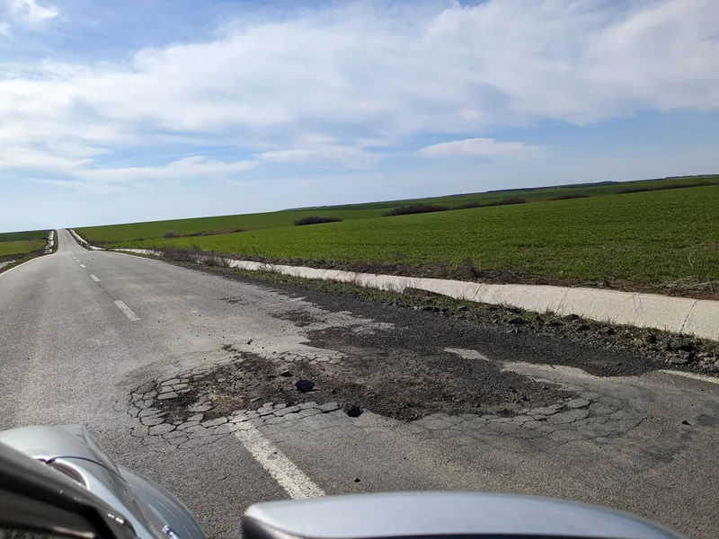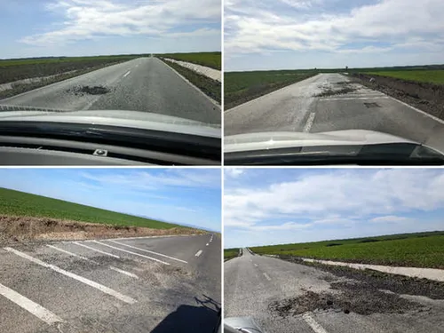 Pe câteva porțiuni s-au format deja cratere, iar pe altele pojghița proaspătă de asfalt este atât de subțire și de o calitate atât de proastă încât se fărâmițează și se exfoliază sub roțile mașinilor. La prima ploaie mai serioasă, ar putea fi chiar „spălată”.