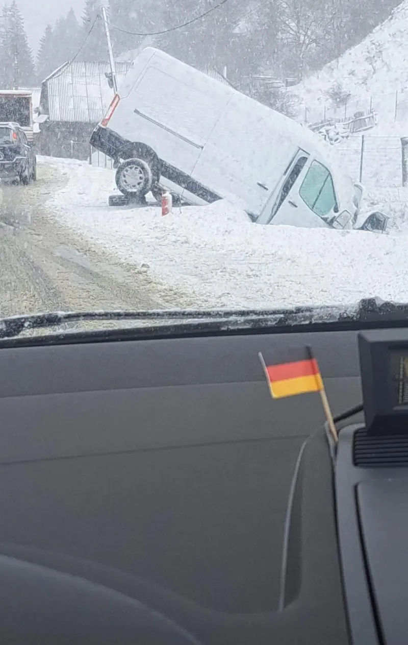 În zona Borsec, din cauza zăpezii de pe carosabil, au avut loc mai multe accidente.