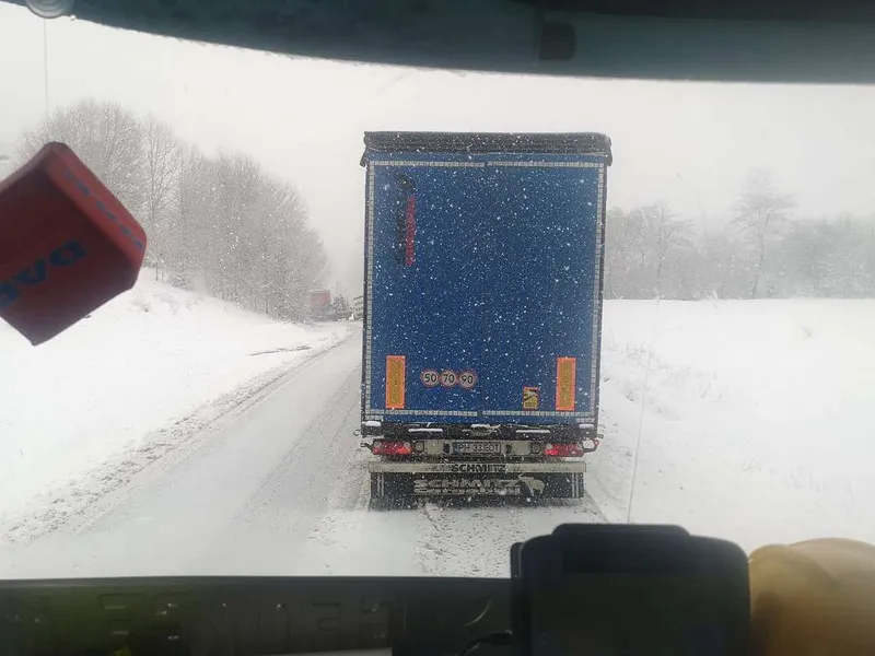 FOTO Haos pe șosele! Iarna blândă i-a „adormit” pe drumari, zăpada i-a luat iar prin surprindere