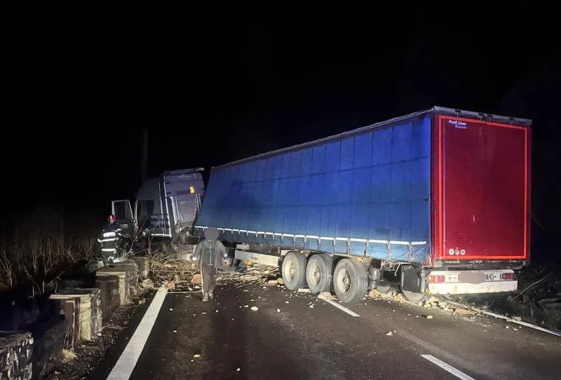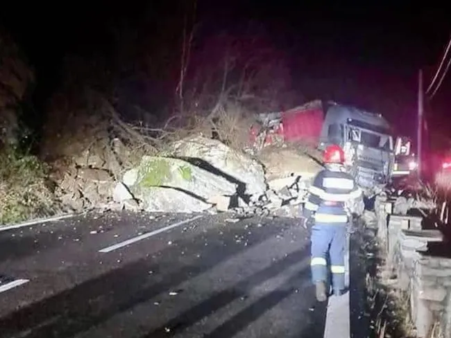 O stâncă a căzut peste un camion pe Valea Oltului, în zona Brezoi, în jurul orei 21.00. Circulația este blocată total, iar autoritățile încearcă să degajeze drumul.