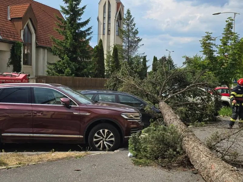 Pompierii au intervenit în zeci de localități din România, afectate de furtunile din ultimele 24 de ore. Copaci căzuți peste mașini, acoperișuri smulse de vânt, sunt doar câteva dintre problemele aduse de vremea extremă.