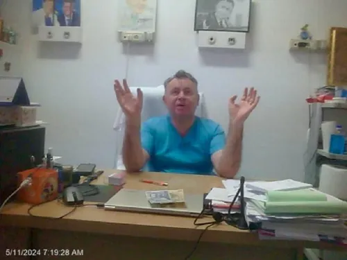 Sunt câteva fotografii care au apărut și în spațiul public. Se vede cum pe biroul medicului sunt așezate pe laptop, sunt câteva bancnote de 100 și 200 de lei.