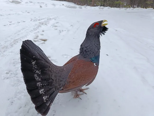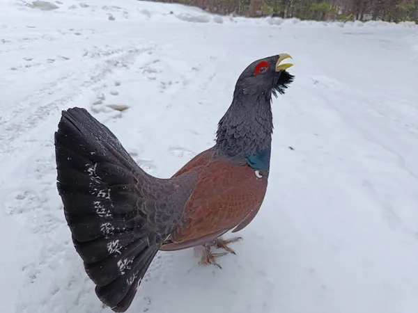 Imagini inedite surprinse în Parcul Natural Călimani unde un cocoș de munte s-a lăsat pozat de rangerii din zonă.