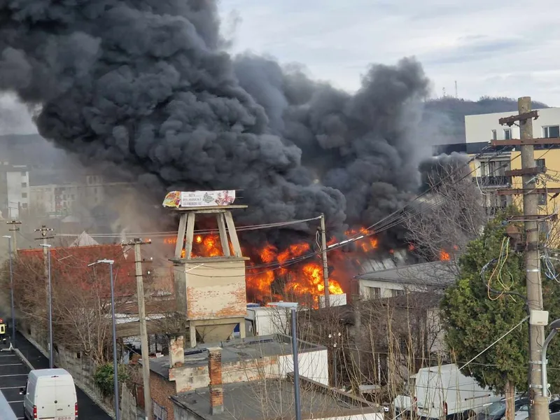 'Flăcările au cuprins aproximativ 300 de metri pătrați din suprafața halei, unde se află mai multe autoturisme care au fost afectate de incendiu', a informat Andreea Ștefan.