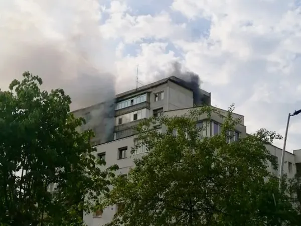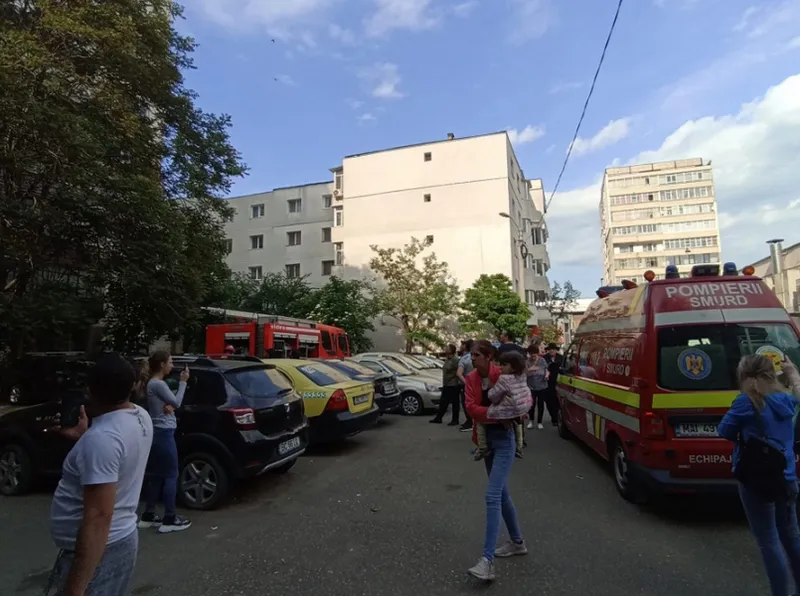 FOTO Incendiu, într-un bloc cu 10 etaje din Bacău. Zeci de persoane, evacuate