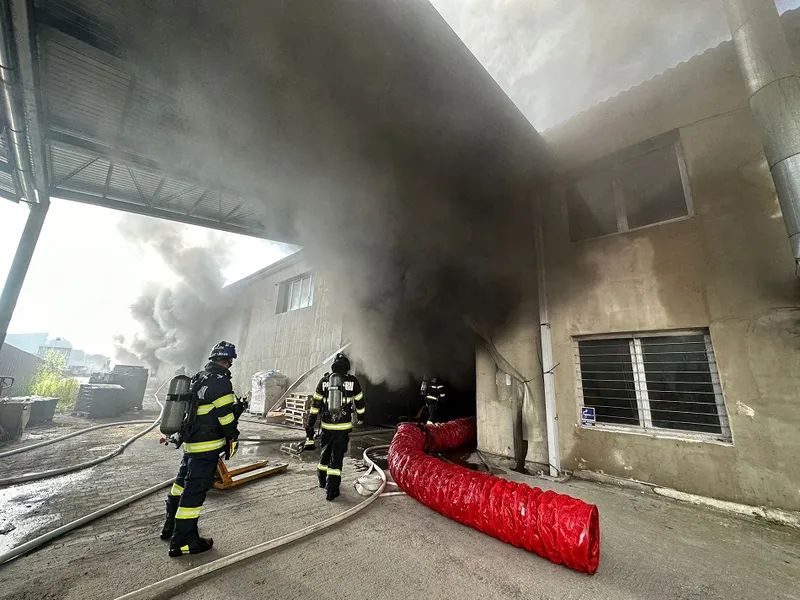 FOTO Incendiu violent la un depozit de calculatoare. Au fost trimise 2 ambulanțe SMURD