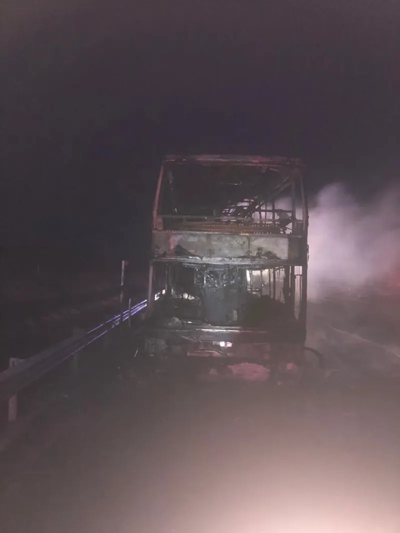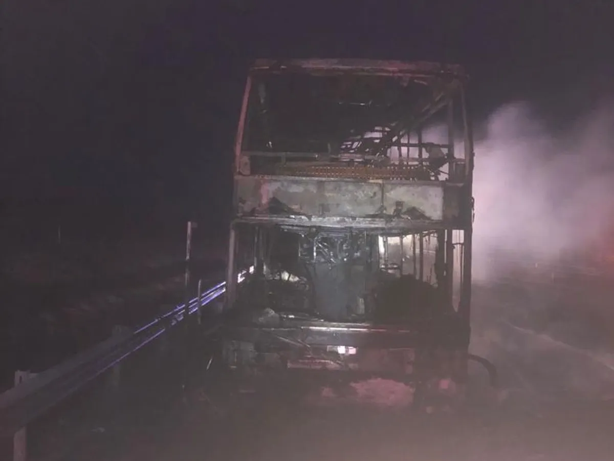 "La faţa locului, incendiul se manifesta generalizat la întreg autocarul. A ars autocarul în totalitate, iar cauza probabilă de izbucnire a incendiului a fost determinată de un scurtcircuit electric. A fost salvată remorca acestuia, care conţinea bagajele pasagerilor. Din informaţiile primite de la faţa locului, autocarul se întorcea din Franţa", a precizat Alina Voina.