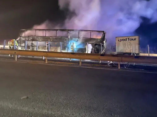 Potrivit sursei citate, autocarul care venea din Franţa a ars în totalitate, din cauza unui scurtcircuit electric.