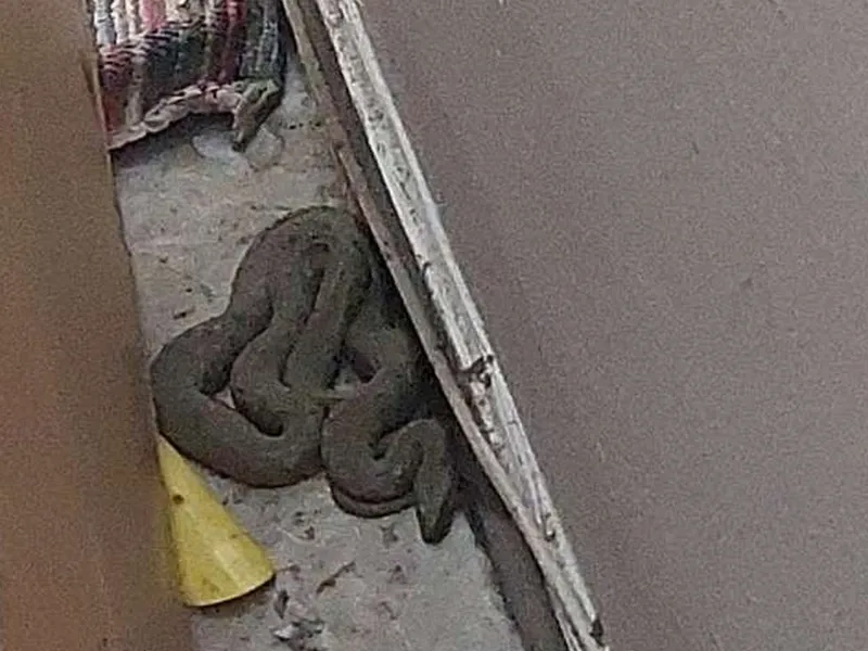 FOTO Înfricoșător! Un șarpe de peste un metru, „chiriaș” într-un apartament. L-au prins jandarmii