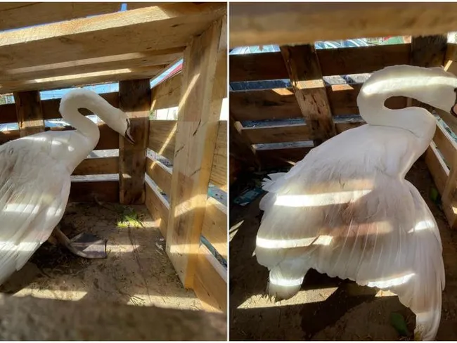 FOTO Lebădă rănită, salvată de Comisarii Gărzii de Mediu: Amendă pentru cei care nu declară păsările