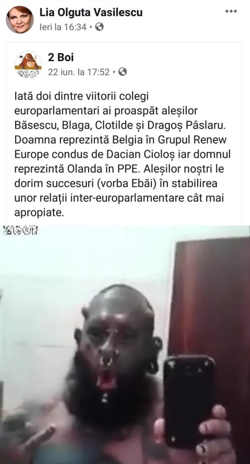 Doamna reprezintă Belgia în Grupul Renew Europe condus de Dacian Cioloș iar domnul reprezintă Olanda în PPE. Aleșilor noștri le dorim succesuri (vorba Ebăi) în stabilirea unor relații inter-europarlamentare cât mai apropiate”, este textul postării de pe Facebook, distribuită de Lia Olguța Vasilescu.