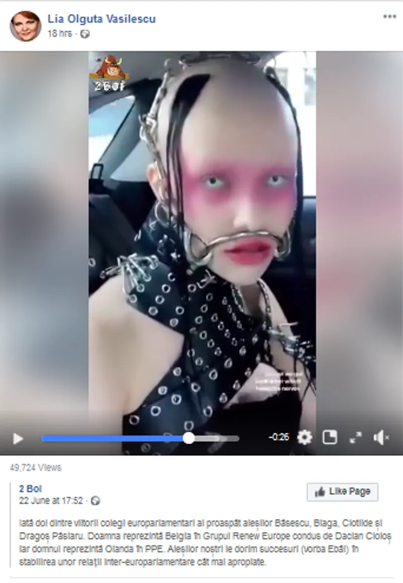 Fostul ministru al Muncii, Lia Olguța Vasilescu, a distribuit joi pe contul personal de Facebook, o postare a paginii „2boi”, în care apar două persoane acoperite de tatuaje și piercing-uri.