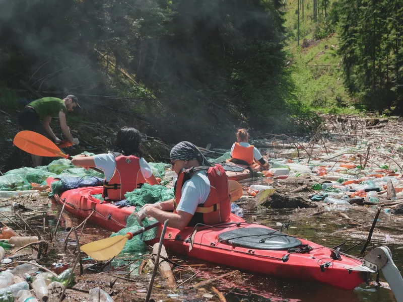 FOTO Mii de saci de gunoaie colectați de pe lacul Beliș, de unde beau clujenii apă