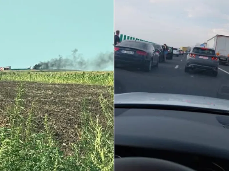 Momente de panică pe o autostradă din România. O cisternă cu GPL a luat foc. Traficul este blocat în zonă. Șoferul camionului a suferit arsuri.