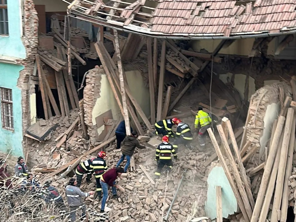 Momente dramatice la în Odorheiul Secuiesc. Un perete al internatului Liceului Tamași Aron s-a prăbușit din senin luni după-amiază. Patru copii, elevi ai liceului, au fost prinși sub dărâmături.