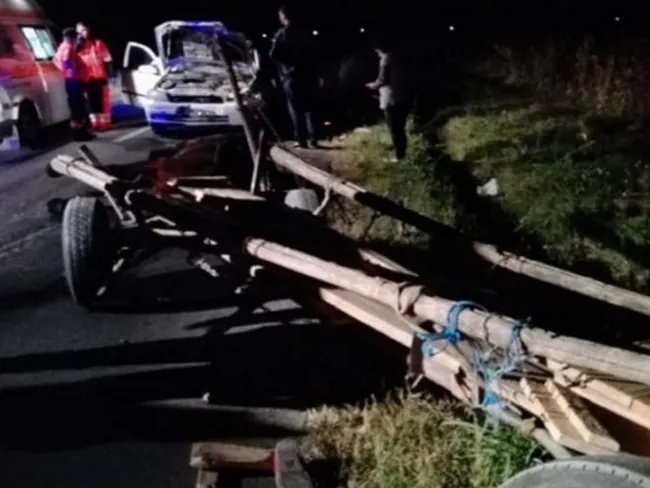 O mașină s-a înfipt într-o căruță pe DN 79. Accidentul a avut loc vineri seară, între localităţile Nădab şi Şimand, iar toți cei 4 ocupanți ai atelajului au ajuns la spital.