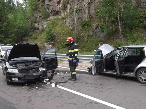 FOTO O șoferiță beată criță a intrat violent într-o mașină de pe contrasens. Trei răniți grav