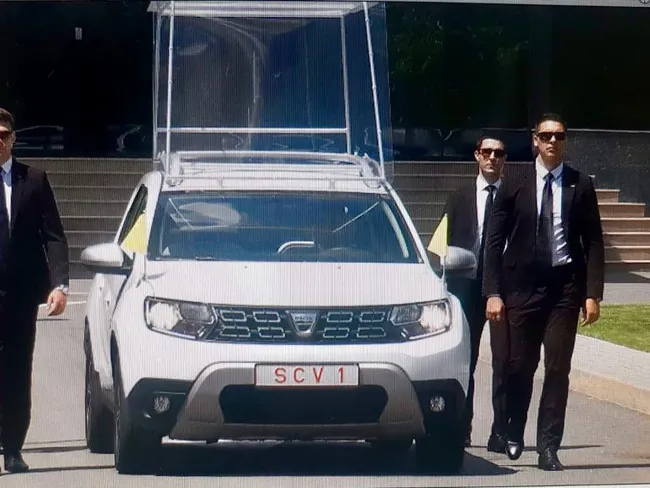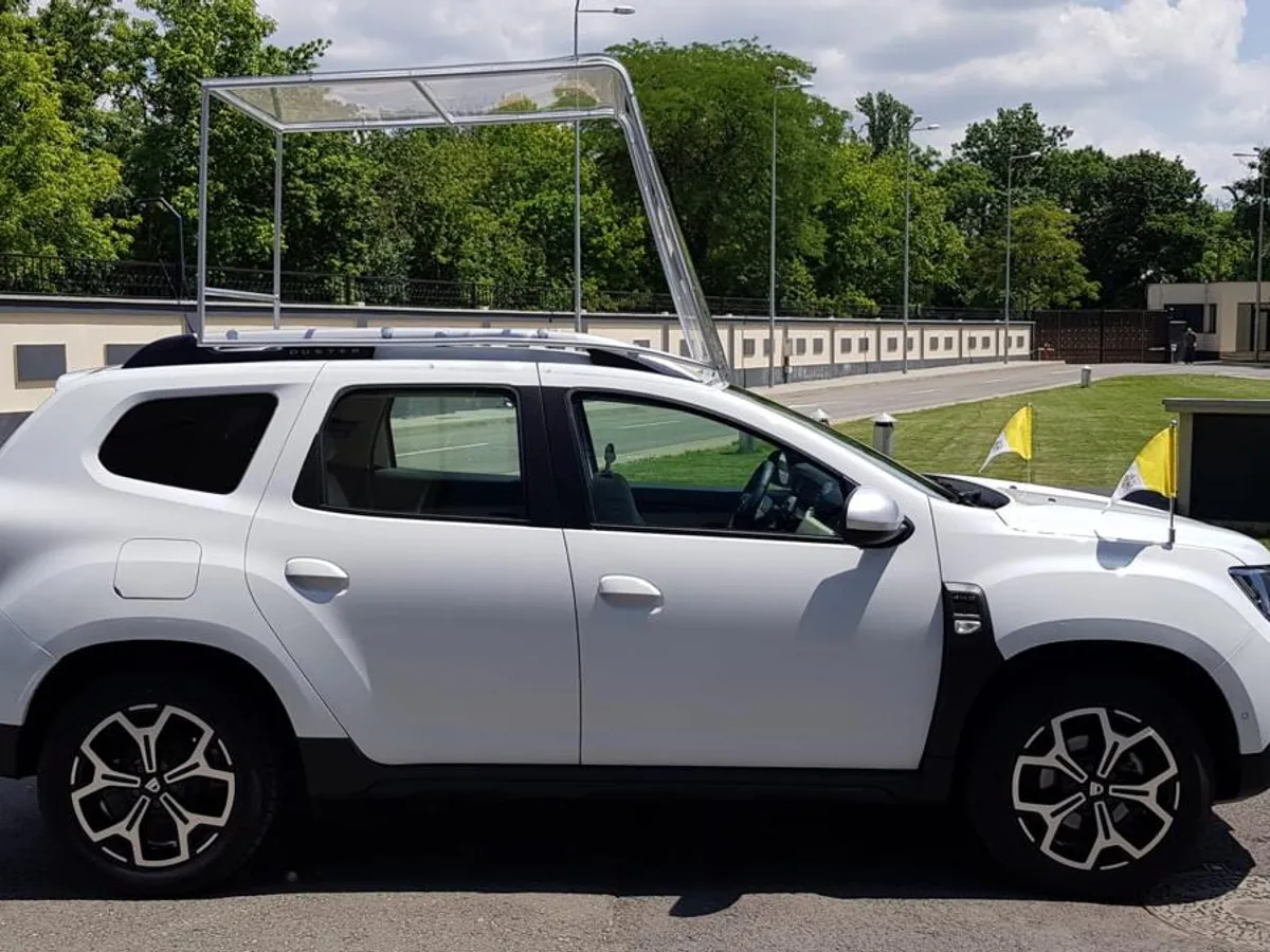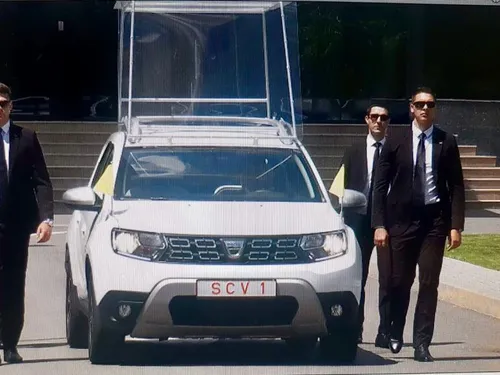 Papamobilul cu care Sanctitatea Sa se va deplasa în România va fi un Duster modificat, pregătit special de către Dacia și Serviciul de Protecție și Pază.