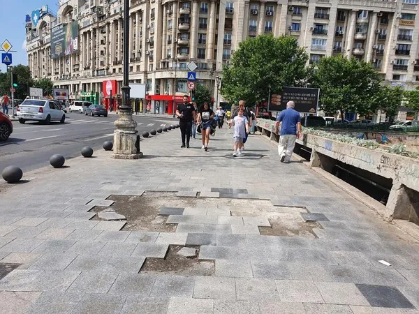 Primăria Capitalei a reabilitat anul trecut și la începutul acestui an o parte din trotuarele de la Piața Unirii, însă această bucată a fost omisă. Chiar și pe segmentul proaspăt reabilitat au apărut probleme deoarece au fost montate prost și fie au început să se desprindă, fie se formează bălți când plouă.
