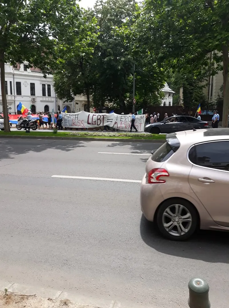 In aceeasi zi cu parada gay are loc, in fiecare an, si marsul organizat de Noua Dreapta, organizatie de extrema dreapta. Cei aproximativ 100 de participanti au scandat “ Azi homosexuali, mâine poligami", "Mama, tata, soră, frate, nu Sodoma şi Gomora “.