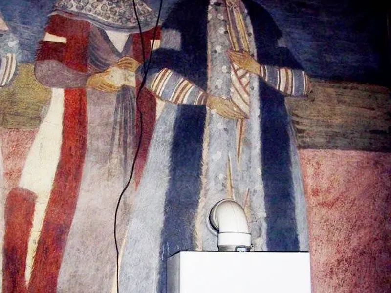 O pictură veche de mai bine de 200 de ani, din Biserica Sfântul Nicolae din Târgu Jiu, a fost distrusă, după ce un instalator a montat peste ea o centrală termică, fără să aibă acordul Direcției Județene pentru Cultură.
