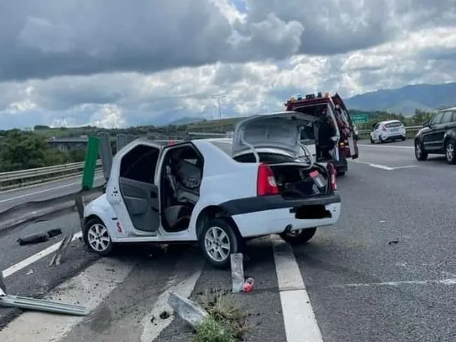 Accident mortal, pe autostrada A1 Sibiu - Deva. Un șofer de 51 de ani a pierdut controlul unei Dacii Logan, s-a înfipt în glisiera mediană, distrugând-o pe mai mulți metri, și și-a pierdut viața.